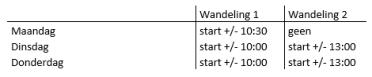 zijn. De wandelingen duren minimaal een uur en zullen plaats vinden in één van de verschillende